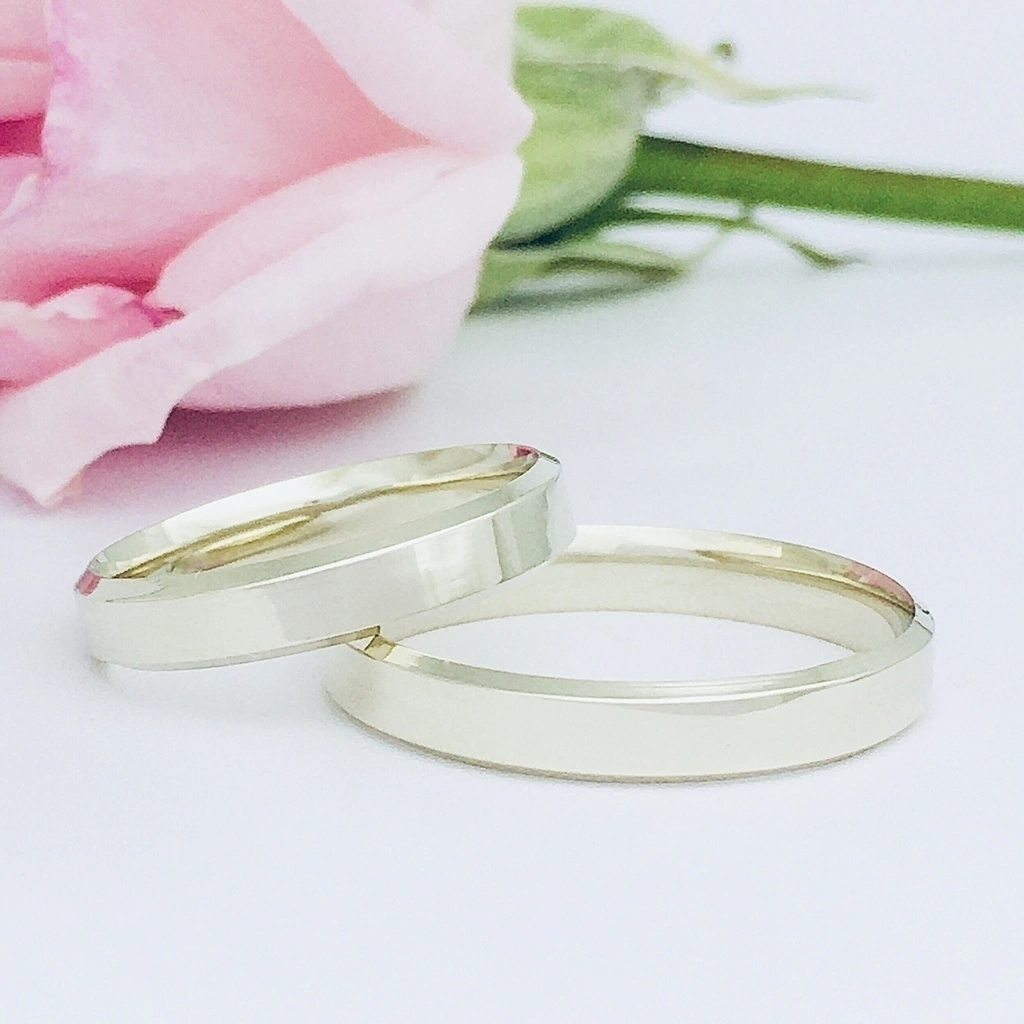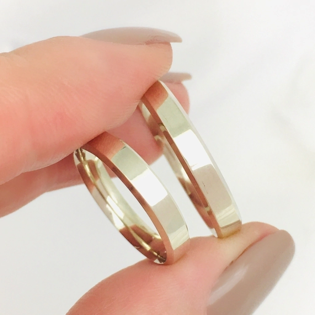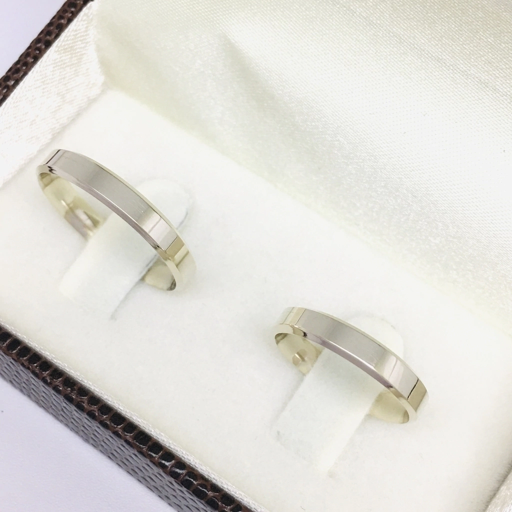 Par de alianças chanfrada, semi anatômica, em ouro branco 12k (500). Largura aproximada: 3.0mm. Espessura aproximada: 0.8mm. Peso médio do par: 4.2g. (o peso pode variar de acordo com os aros/tamanho dos dedos selecionados). | O par de alianças será confeccionado à mão especialmente para o casal. | Personalize incluindo pedras na feminina e/ou detalhe fosqueado (consulte diferença de valor). | Prazo de entrega 03 dias úteis. | COD: SA250/12KBC | CV 2.5.