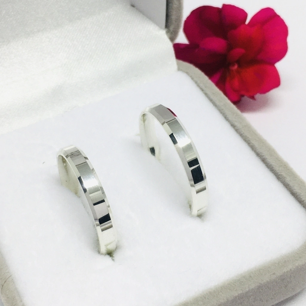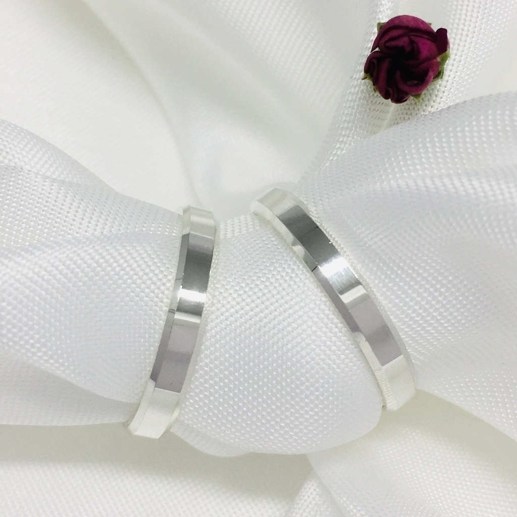 Par de alianças em prata 950, chanfrada, anatômica, estreita (fina). Medidas aproximadas: Largura: 3mm. | Espessura: 1,5mm. | Peso médio do par: 4,0g (o peso pode variar de acordo com os aros/tamanho dos dedos selecionados). | O par de alianças será confeccionado especialmente para o casal. | Personalize incluindo pedras na feminina (consulte diferença de valor). | Prazo de entrega 15 a 20 dias úteis. | COD: SA03.