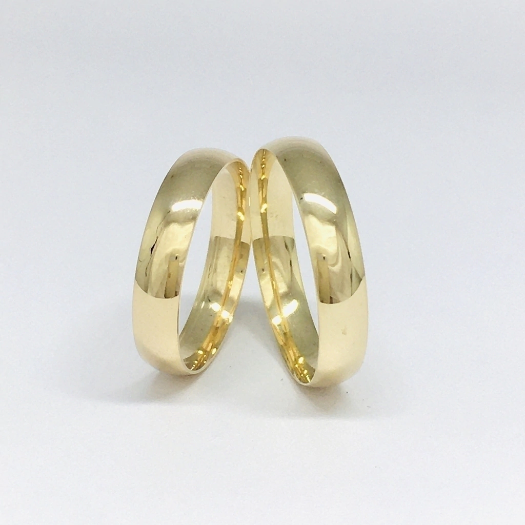 Par de alianças clássicas, anatômica, em ouro 12k (500). Peso médio do par: 2,5g (o peso pode variar de acordo com os aros/tamanho dos dedos selecionados). | Largura: 4mm | Espessura: 1.1mm | O par de alianças será confeccionado à mão especialmente para o casal. | Personalize incluindo pedras na feminina e/ou detalhe fosqueado (consulte diferença de valor). | Prazo de entrega 03 dias uteis | COD SA250 | CV 2.50.